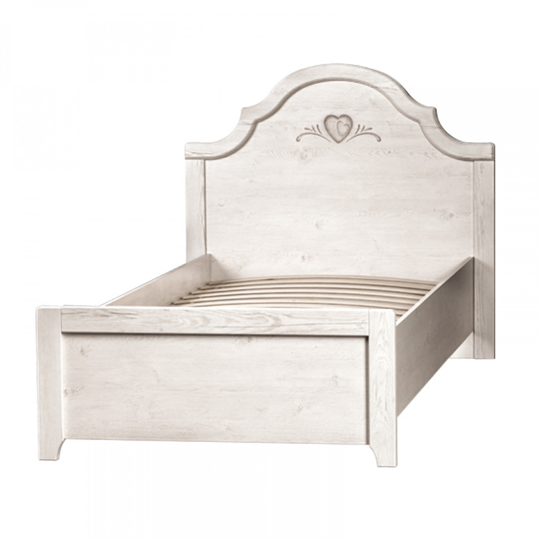 Корпус: ДСП, декор – сосна белая. Основание кровати – ламели