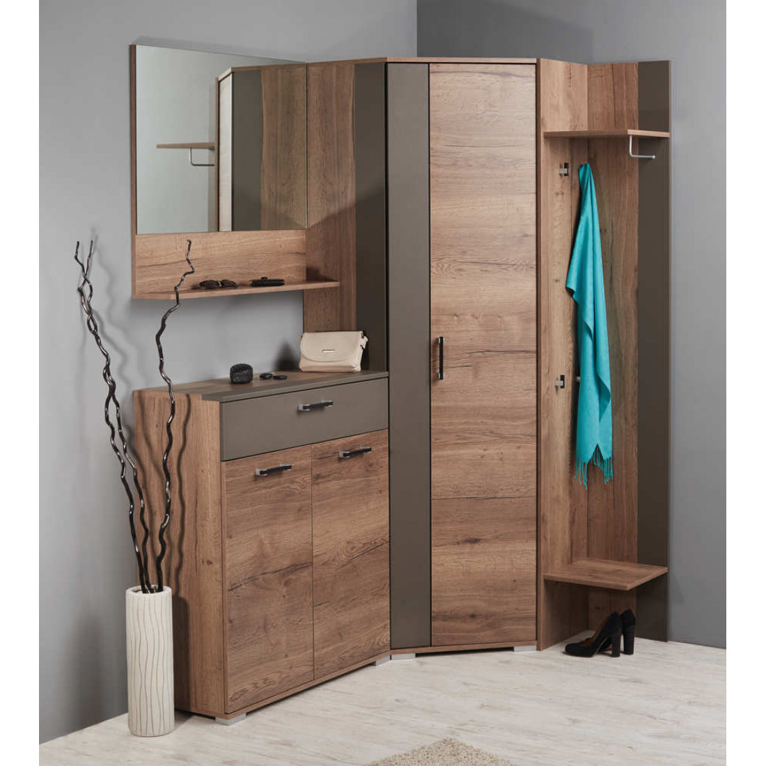 Также Вы можете приобрести комплект дополнительных полок и зеркало для углового шкафа.