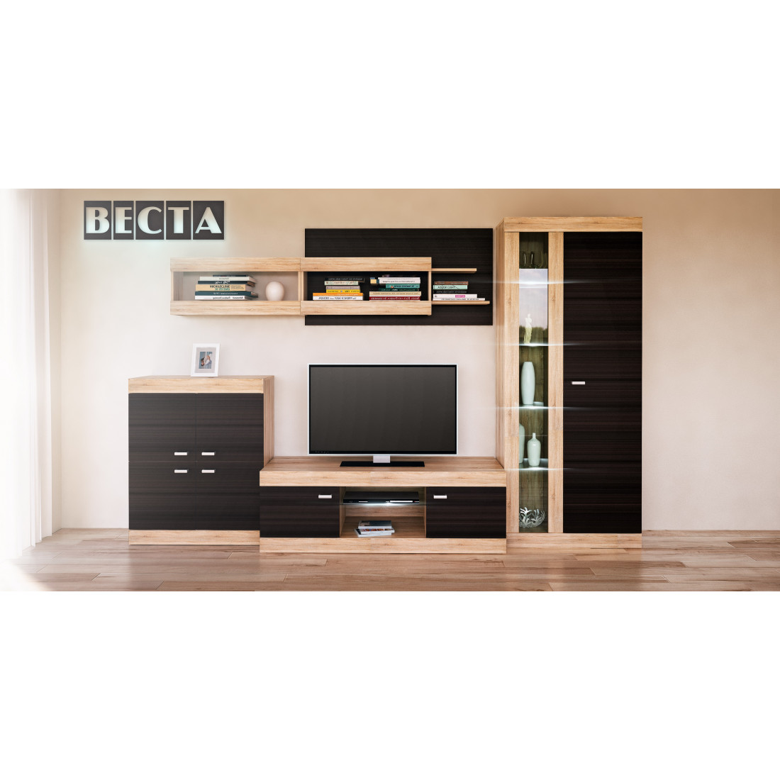 Настенная полка Веста МН-130-05 прекрасно дополнит выбранную Вами гостиную.
