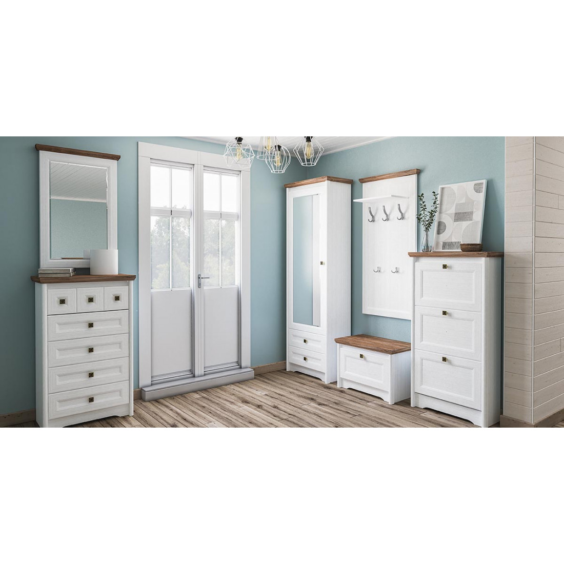 Классическая прихожая – это вовсе не громоздкая, массивная композиция, создающая в малогабаритной комнате ощущение замкнутости и тесноты. Убедиться в этом поможет полная легкости и изысканности модульная прихожая Тиволи от фабрики Мебель-Неман. Выполнена в очаровательном французском стиле, она предельна невосома и изящна, и в тоже время – вместительна и функциональна.