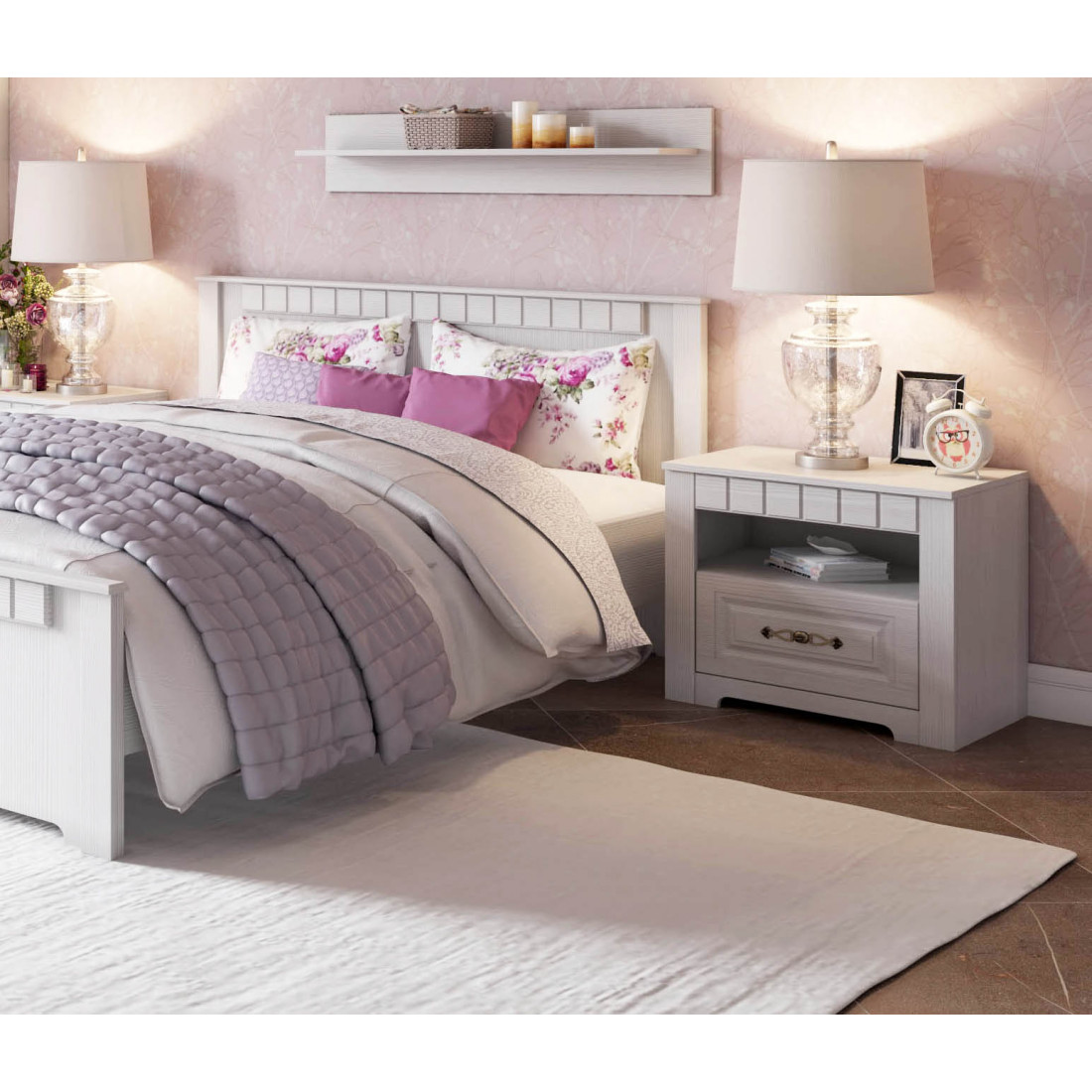 Спальня Прованс от Мебельград - это шарм сельской метности, домашнего уюта, нежные тона и продуманная организация пространства. Изящные декоративные элементы добавят очарования всему интерьеру, внося нотки классики в ваш декор. Располагайте даже объемные спальные принадлежности с удобством во вместительных отделах шкафа и комода.