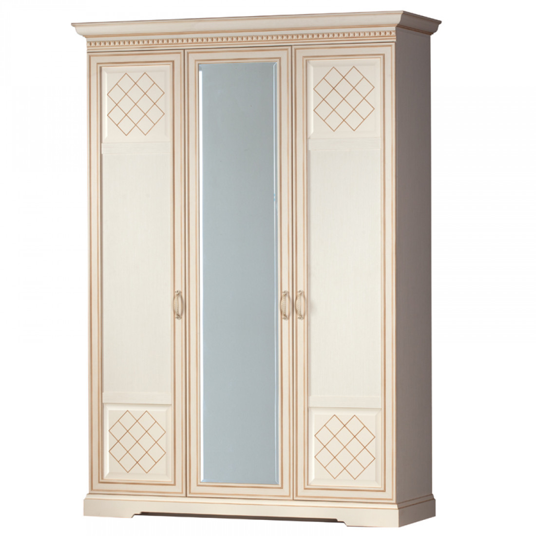 Фасады: МДФ, декор – кремовый белый, патина, зеркало с фацетом